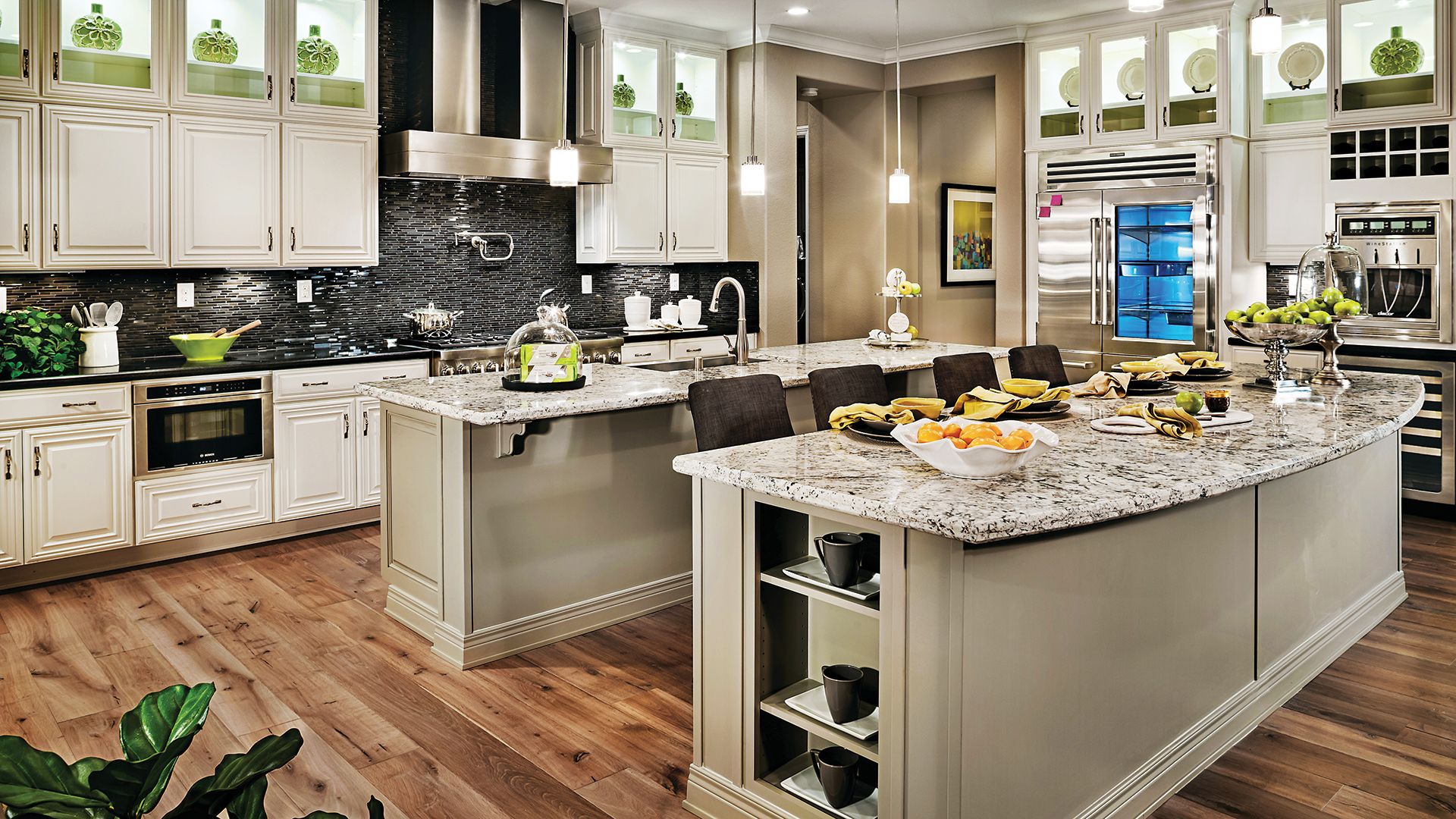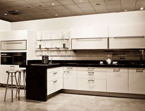 Enormous Kitchens that like the T-Shaped kitchens are gorgeous and best for homes with grand size kitchens. This can be assumed like an extended version of an Island Kitchen. It has a special Dining extension attached to the central mount. Hence the central mount is absolutely free for all type of experiments like for storage or turning it into a see through cabinet or a little bar. This kitchen style is exclusively meant for households which love socializing and organizes frequent events and gatherings. You can pick up interior themes to give your kitchen a unique stylization.